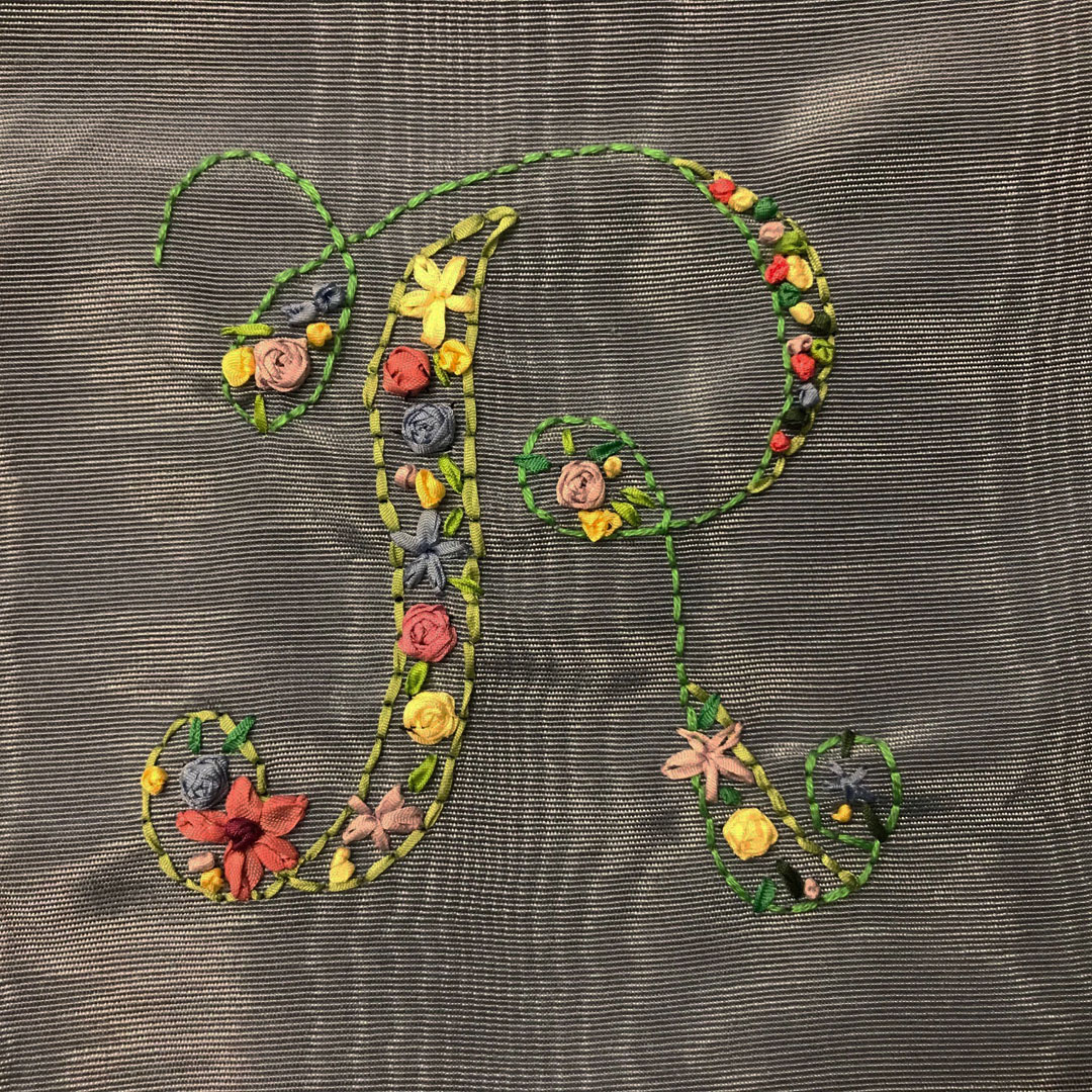Learn the beautiful technique of silk ribbon embroidery. You have a choice of making an initial or monogram with stitched flowers or a heart.